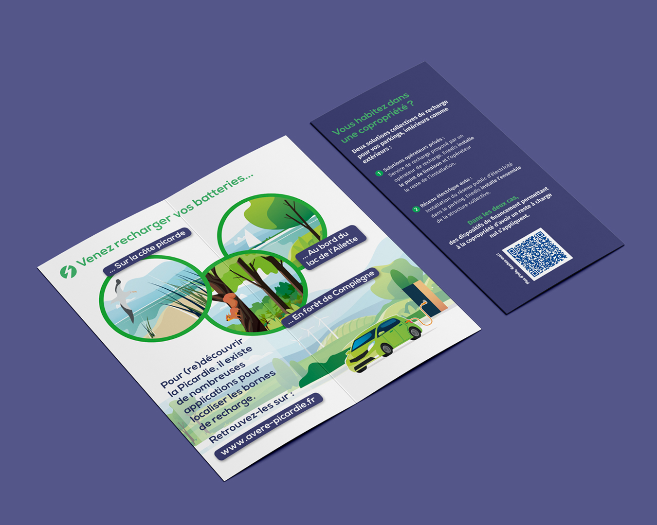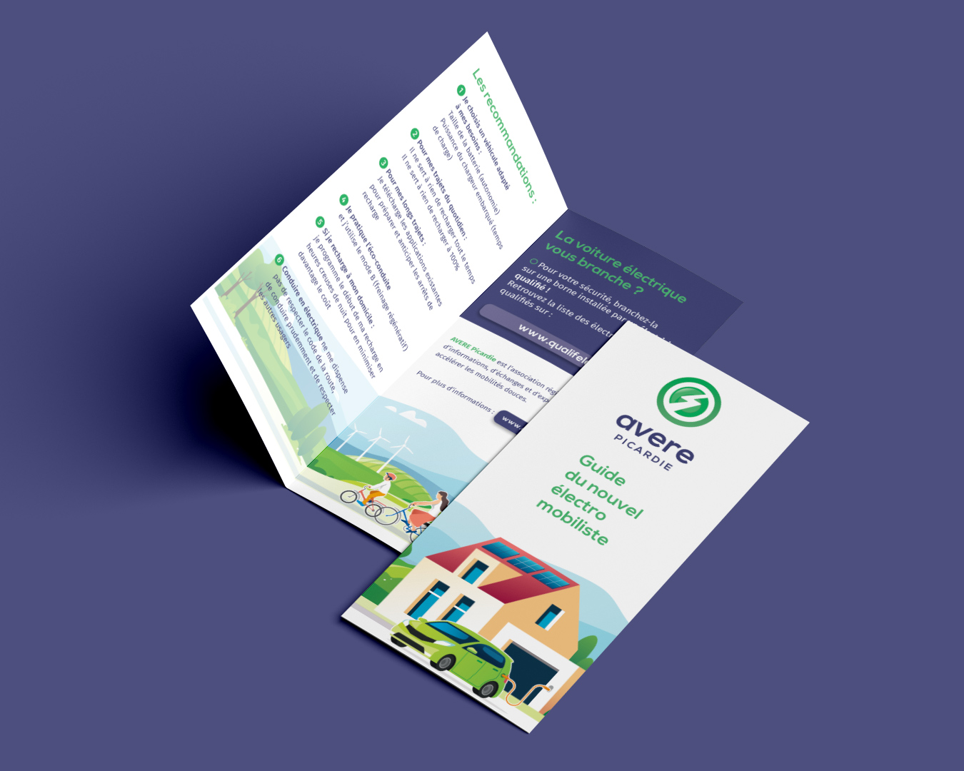 L’agence Tri-Angles a accompagné AVERE Picardie, l’association régionale pour la promotion de la mobilité électrique, pour le déploiement de sa communication visuelle.