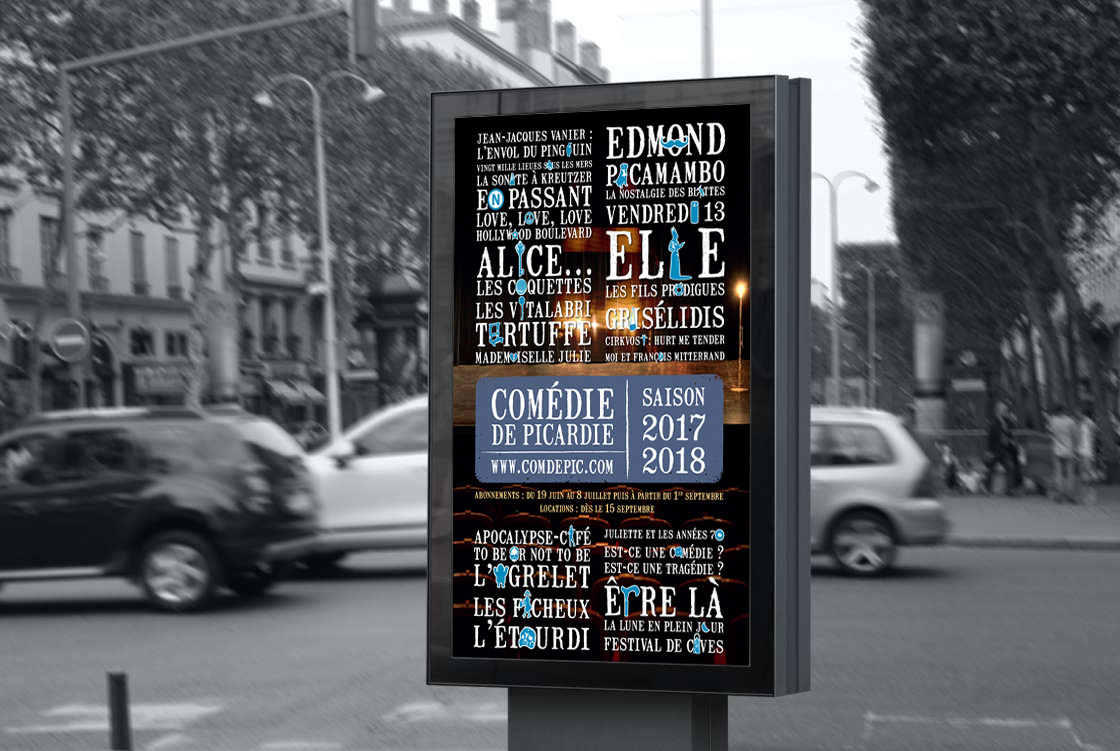 Depuis 2001, nous accompagnons la Comédie de Picardie au fil de ses saisons théâtrales. Nos échanges, notre écoute et notre créativité permettent une réponse personnalisée et exigente, fidèle aux attentes de l’équipe de direction et de la communication.