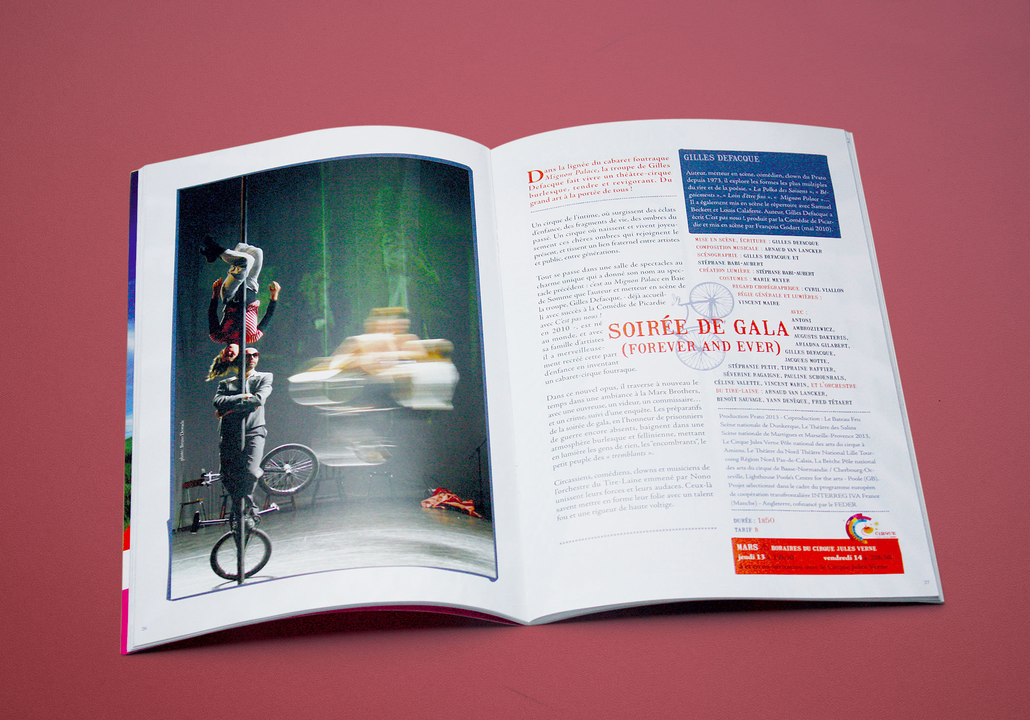 Nous avons travaillé sur la création de la charte graphique, des affiches et cahiers de saison ainsi que sur l’élaboration du site que nous actualisons tous les ans.