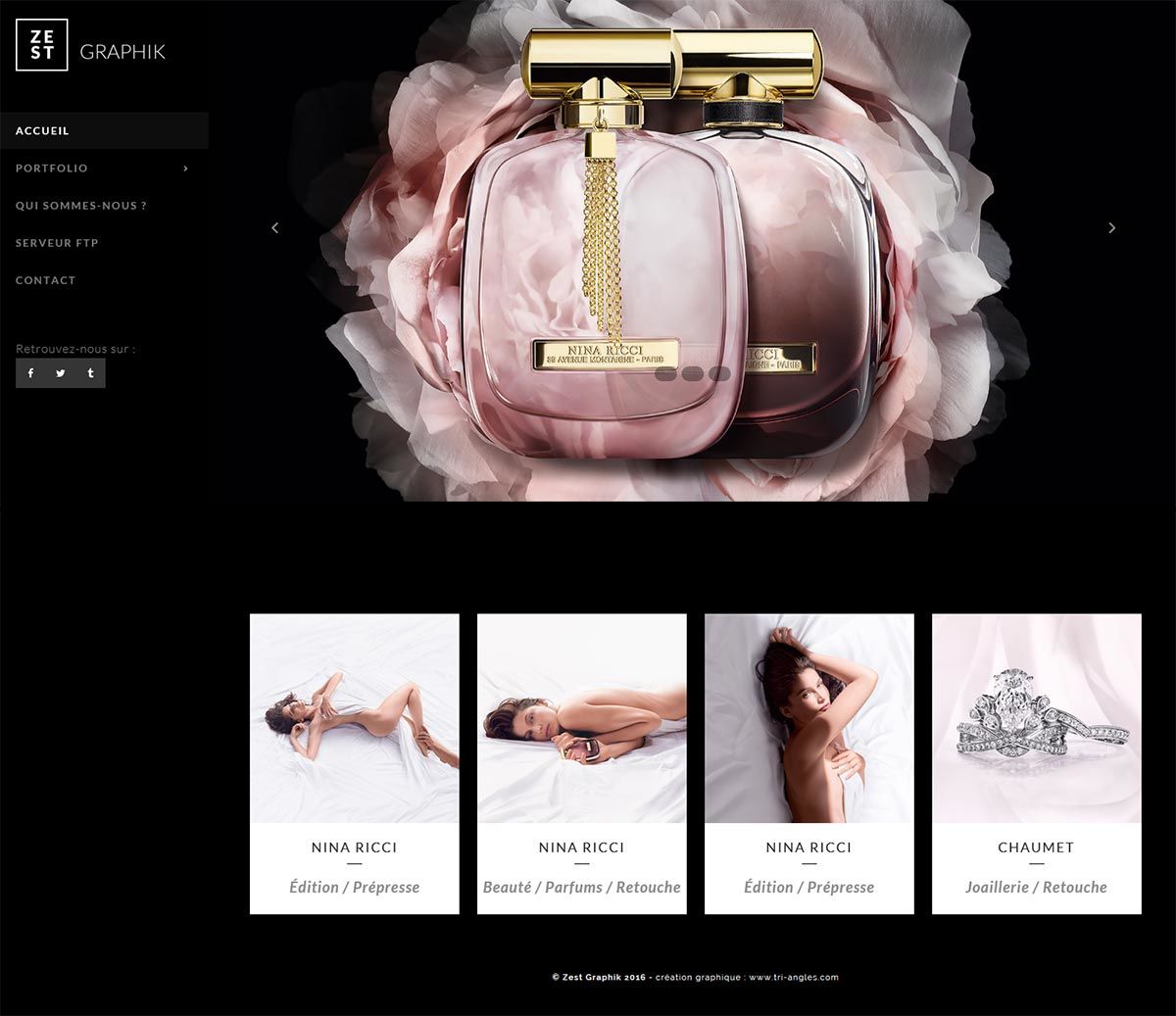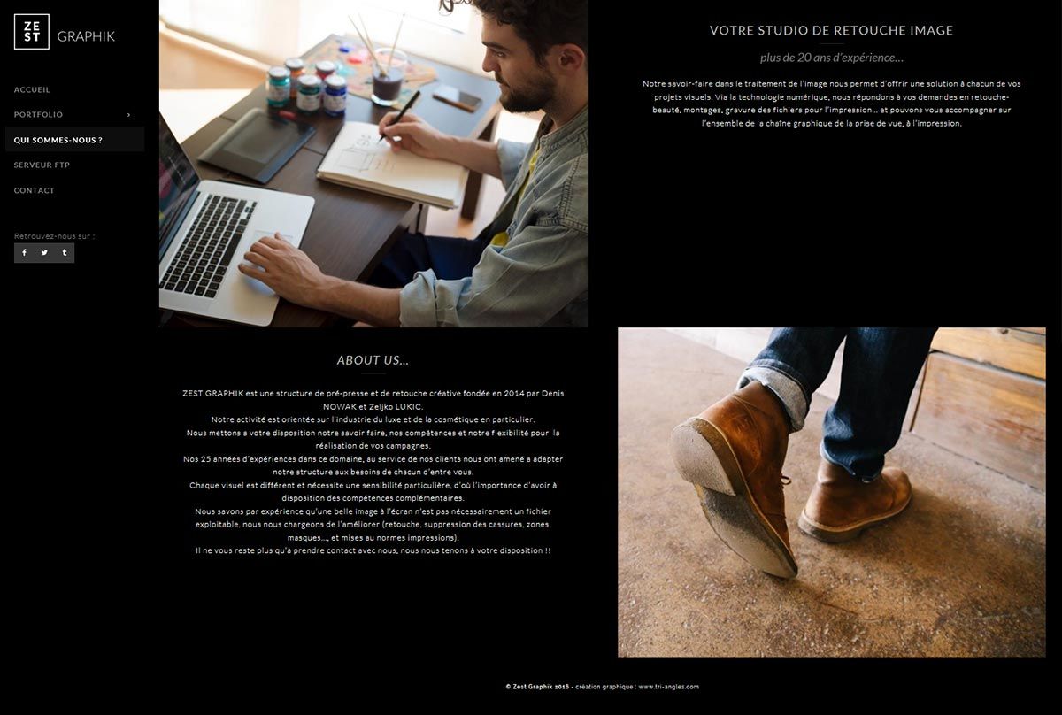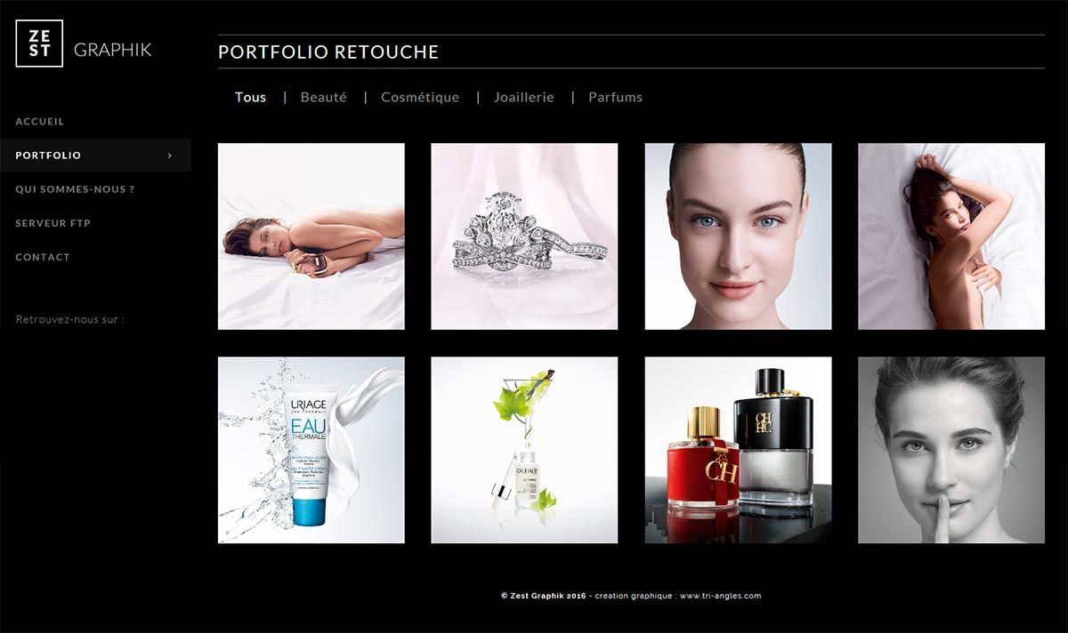 Zest Graphik est une socièté spécialisée dans la retouche d’images. Nous avons donc proposé un site internet permettant l’intégration d’un portfolio afin de mettre en avant leur savoir faire.
