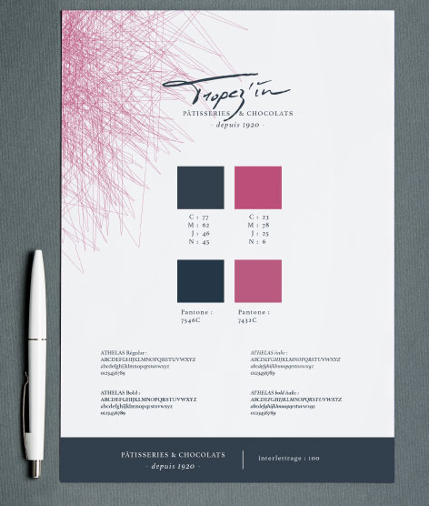La chocolatière et pâtissière Hélène Pierrugues, de Tropez’in Amiens, nous a confié quelques éléments, déjà existants, de sa charte graphique, afin que nous la rendions plus cohérente et harmonieuse… à l’image de ses créations gourmandes.